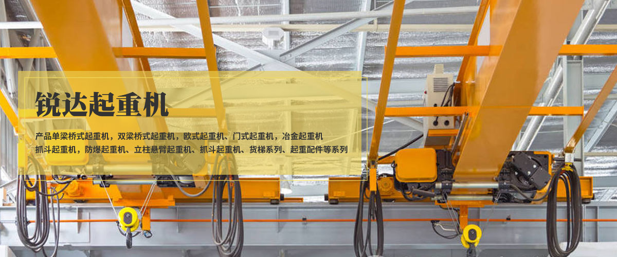 大連銳達起重機有限公司坐落在美麗的海濱城市--大連,是中國專業的起重機生產供應商,從事起重機的設計、制造、銷售。也可為用戶進行起重機系統工程的安裝,改造,維修,維保,非標設計等業務。主要產品單梁橋式起重機,雙梁橋式起重機,歐式起重機、門式起重機,冶金起重機,抓斗起重機,防爆起重機、立柱懸臂起重機、抓斗起重機、貨梯系列、起重配件等系列。 我們擁有雄厚實力,與國內外多家起重設備龍頭企業達成戰略合作伙伴關系,強強聯合制造出質量優良,價格公道的起重機系列產品服務于國內外市場。 公司堅持科技創新,質量至上,客戶至上,服務至上的原則,服務是我們經營的方針,愿與各界朋友攜手并進共創輝煌。